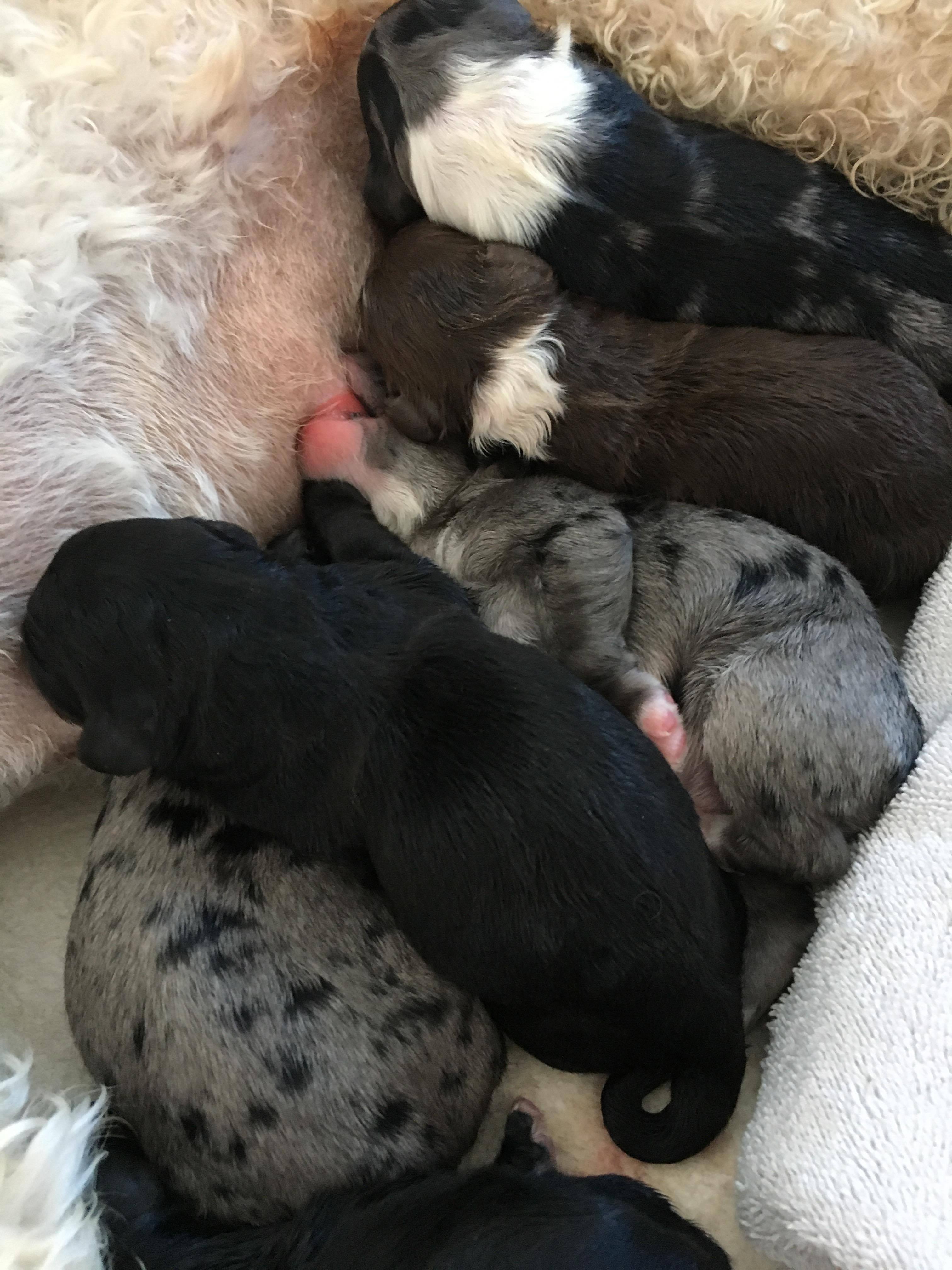We had a litter of Aussiedoodles today, 6 puppies... 5 available, 3 girls and 2 boys.