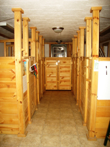 Above is a picture of our kennel indoors. Our dogs are provided with a clean facility, equipped with air conditioning and heat. They never have to deal with weather conditions and are able to roam indoors or outdoors during the day.